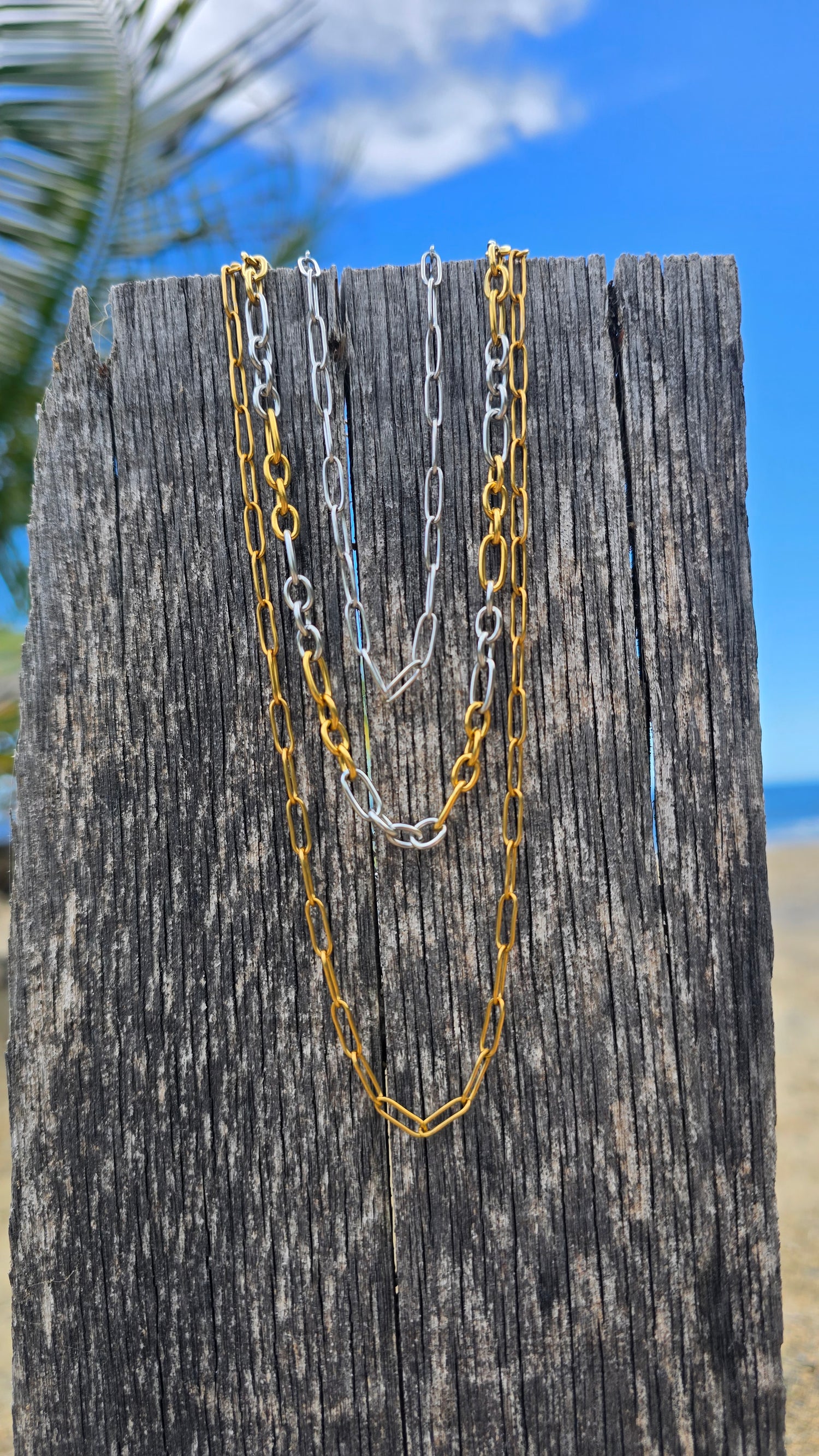 Aunque las cadenas son duraderas, el contacto con el agua, perfumes o cremas puede afectar la resina. Guarda tus piezas en su bolsita cuando no la uses, en un lugar fresco y seco.